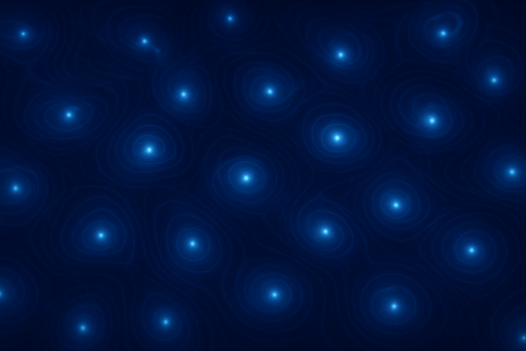 Artistic illustration of the wave–particle duality in an ensemble of ultracold atoms. Image generated with AI.